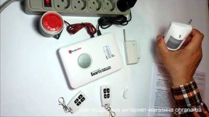 У наборі: датчик руху, датчик двері, 2 пульта ДУ й провідна сирена.